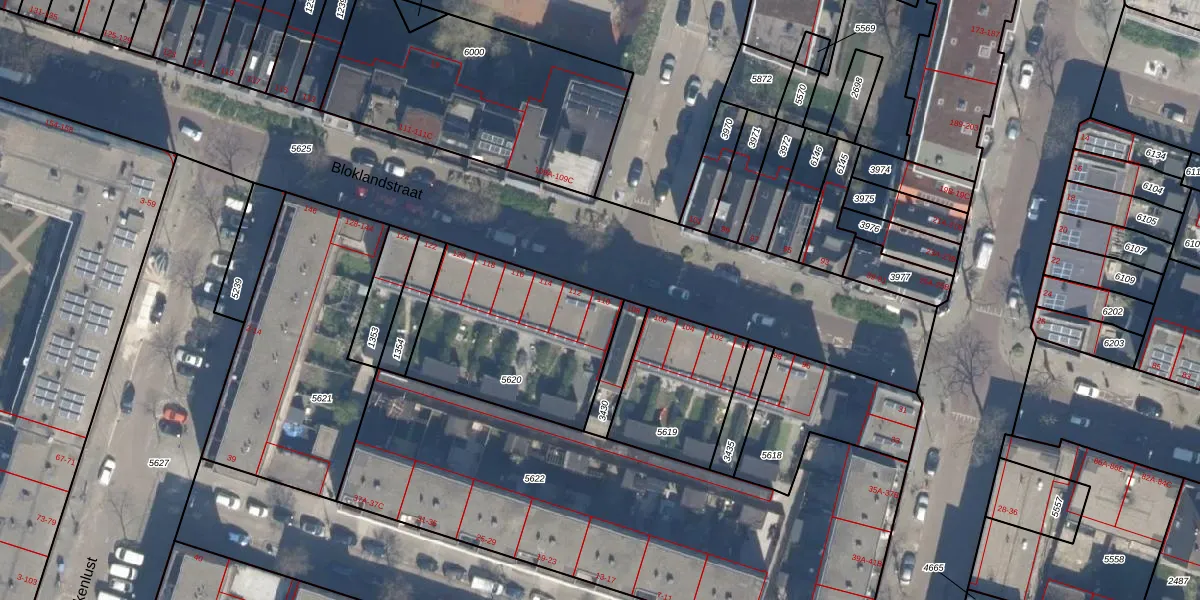 Bloklandstraat 110 is gelegen op kadastraal perceel RTD07W5620. Deze kadastrale aanduiding is uniek en wordt gebruikt door het Kadaster om eigendomsrechten en andere zakelijke rechten vast te leggen. Het perceel maakt onderdeel uit van de kadastrale gemeente Rotterdam.