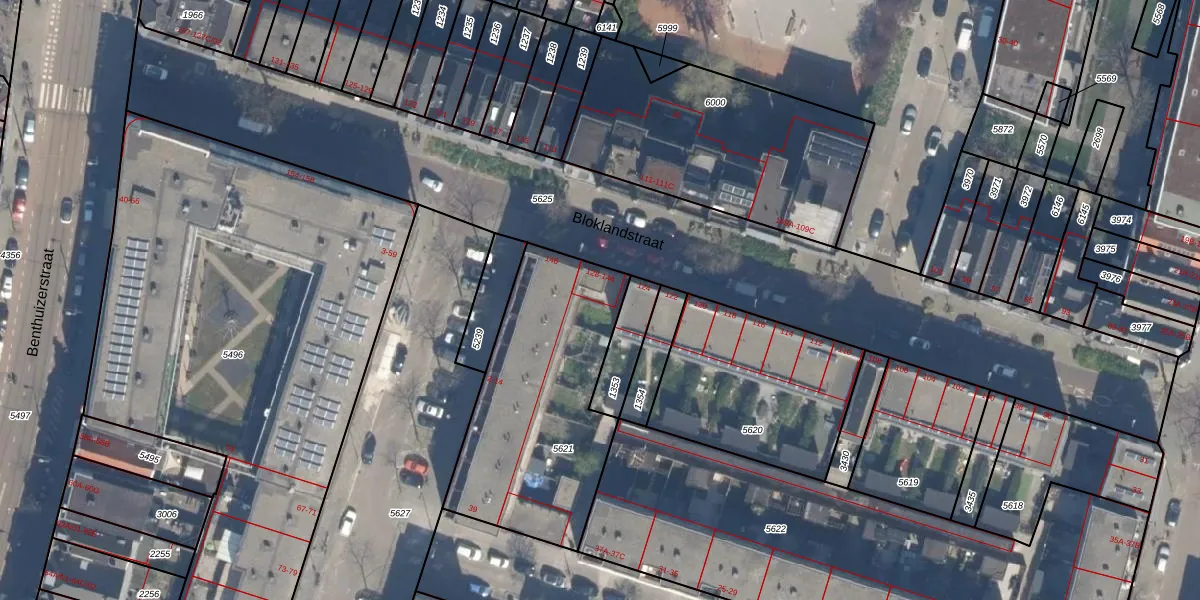 Bloklandstraat 136 is gelegen op kadastraal perceel RTD07W5621. Deze kadastrale aanduiding is uniek en wordt gebruikt door het Kadaster om eigendomsrechten en andere zakelijke rechten vast te leggen. Het perceel maakt onderdeel uit van de kadastrale gemeente Rotterdam.