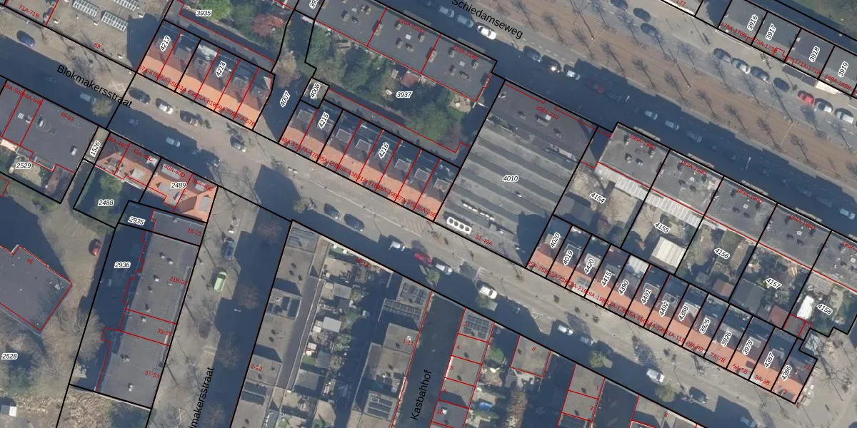 Het perceel waarop Blokmakersstraat 35-B staat heeft een oppervlakte van 426 m². Dit is een groot perceel. De perceeloppervlakte wordt geregistreerd door het Kadaster. Gedetailleerde informatie over de maten van dit perceel kunt u vinden in het rapport Kadastrale kaart met maatvoering van Blokmakersstraat 35-B.