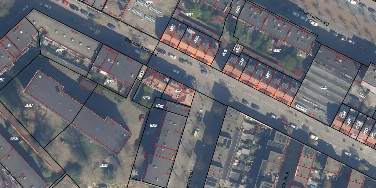 Blokmakersstraat 38-D is gelegen op kadastraal perceel RTD10AA2489. Deze kadastrale aanduiding is uniek en wordt gebruikt door het Kadaster om eigendomsrechten en andere zakelijke rechten vast te leggen. Het perceel maakt onderdeel uit van de kadastrale gemeente Rotterdam.