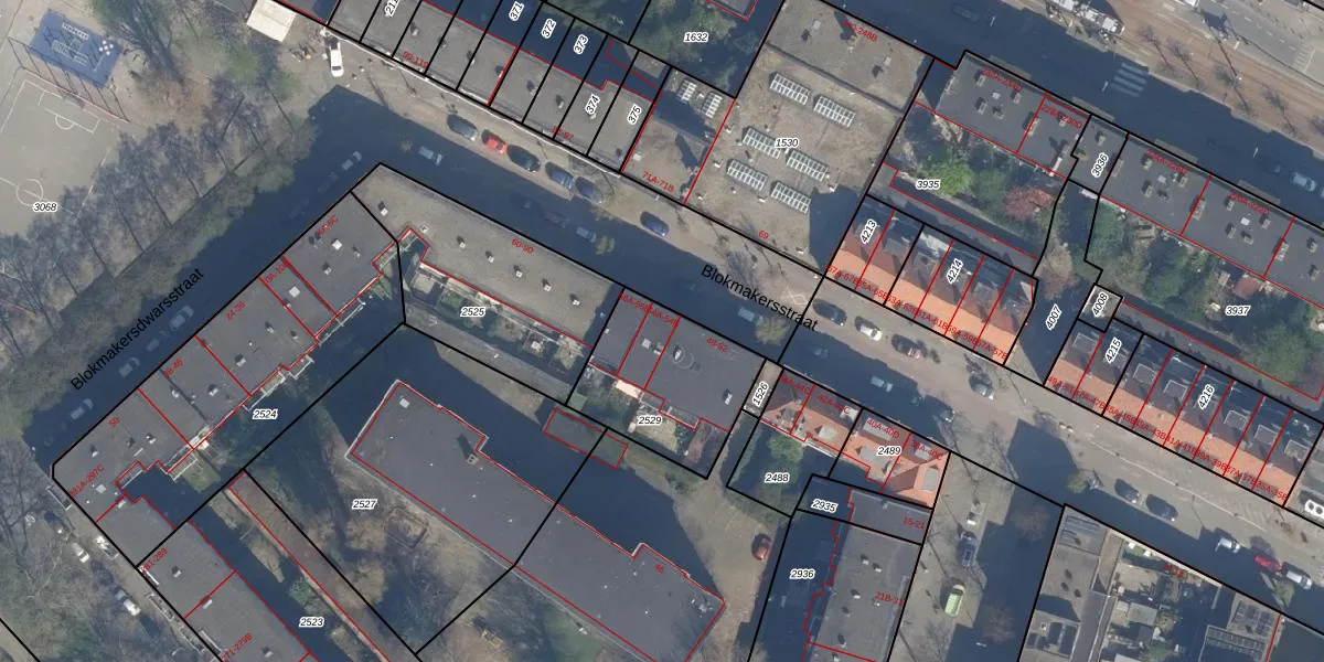 Het perceel waarop Blokmakersstraat 54-A staat heeft een oppervlakte van 472 m². Dit is een groot perceel. De perceeloppervlakte wordt geregistreerd door het Kadaster. Gedetailleerde informatie over de maten van dit perceel kunt u vinden in het rapport Kadastrale kaart met maatvoering van Blokmakersstraat 54-A.