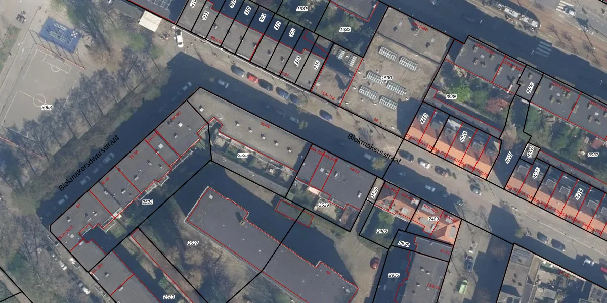 Het perceel waarop Blokmakersstraat 60 staat heeft een oppervlakte van 721 m². Dit is een groot perceel. De perceeloppervlakte wordt geregistreerd door het Kadaster. Gedetailleerde informatie over de maten van dit perceel kunt u vinden in het rapport Kadastrale kaart met maatvoering van Blokmakersstraat 60.