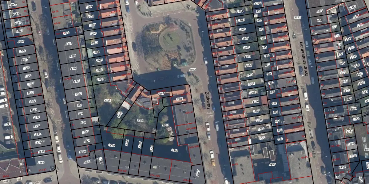 Blokweg 41-A is gelegen op kadastraal perceel RTD05V3388. Deze kadastrale aanduiding is uniek en wordt gebruikt door het Kadaster om eigendomsrechten en andere zakelijke rechten vast te leggen. Het perceel maakt onderdeel uit van de kadastrale gemeente Rotterdam.