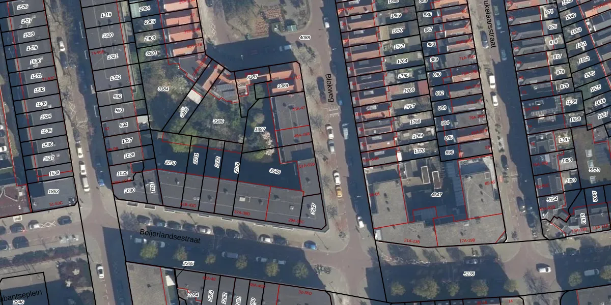 Blokweg 51-A is gelegen op kadastraal perceel RTD05V3548. Deze kadastrale aanduiding is uniek en wordt gebruikt door het Kadaster om eigendomsrechten en andere zakelijke rechten vast te leggen. Het perceel maakt onderdeel uit van de kadastrale gemeente Rotterdam.