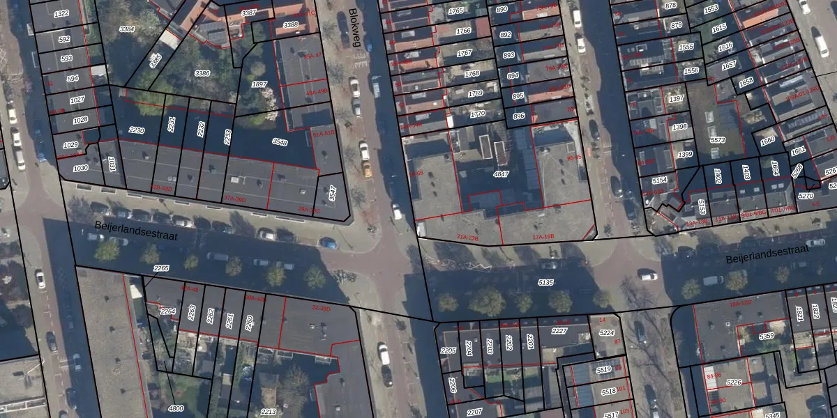 Blokweg 60 is gelegen op kadastraal perceel RTD05V4847. Deze kadastrale aanduiding is uniek en wordt gebruikt door het Kadaster om eigendomsrechten en andere zakelijke rechten vast te leggen. Het perceel maakt onderdeel uit van de kadastrale gemeente Rotterdam.