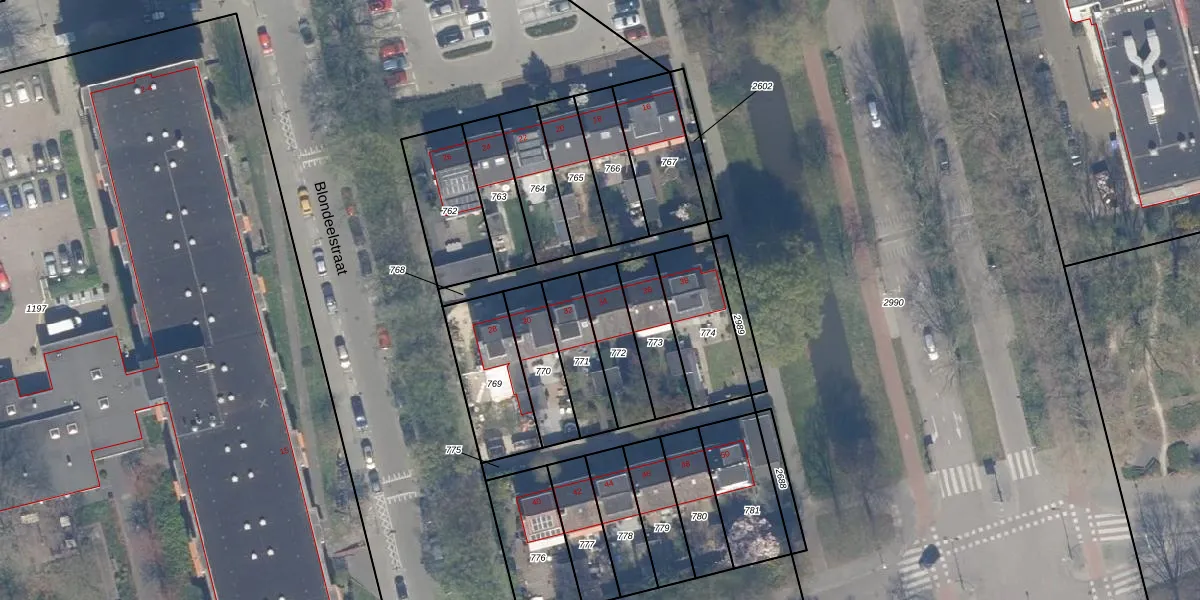 Blondeelstraat 34 is gelegen op kadastraal perceel KLG00K772. Deze kadastrale aanduiding is uniek en wordt gebruikt door het Kadaster om eigendomsrechten en andere zakelijke rechten vast te leggen. Het perceel maakt onderdeel uit van de kadastrale gemeente Kralingen.