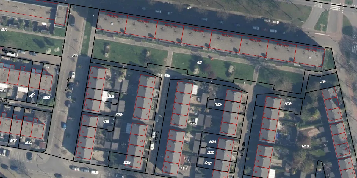 Het perceel waarop Bodelo 2 staat heeft een oppervlakte van 1907 m². Dit is een zeer groot perceel. De perceeloppervlakte wordt geregistreerd door het Kadaster. Gedetailleerde informatie over de maten van dit perceel kunt u vinden in het rapport Kadastrale kaart met maatvoering van Bodelo 2.