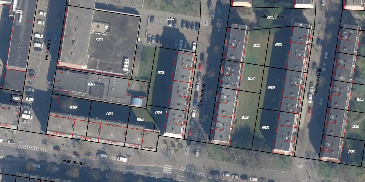 Boeierstraat 17-A is gelegen op kadastraal perceel RTD10AA1280. Deze kadastrale aanduiding is uniek en wordt gebruikt door het Kadaster om eigendomsrechten en andere zakelijke rechten vast te leggen. Het perceel maakt onderdeel uit van de kadastrale gemeente Rotterdam.