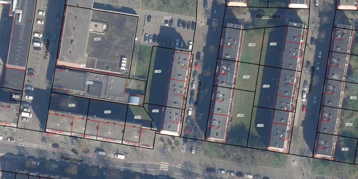 Boeierstraat 17-C is gelegen op kadastraal perceel RTD10AA1280. Deze kadastrale aanduiding is uniek en wordt gebruikt door het Kadaster om eigendomsrechten en andere zakelijke rechten vast te leggen. Het perceel maakt onderdeel uit van de kadastrale gemeente Rotterdam.