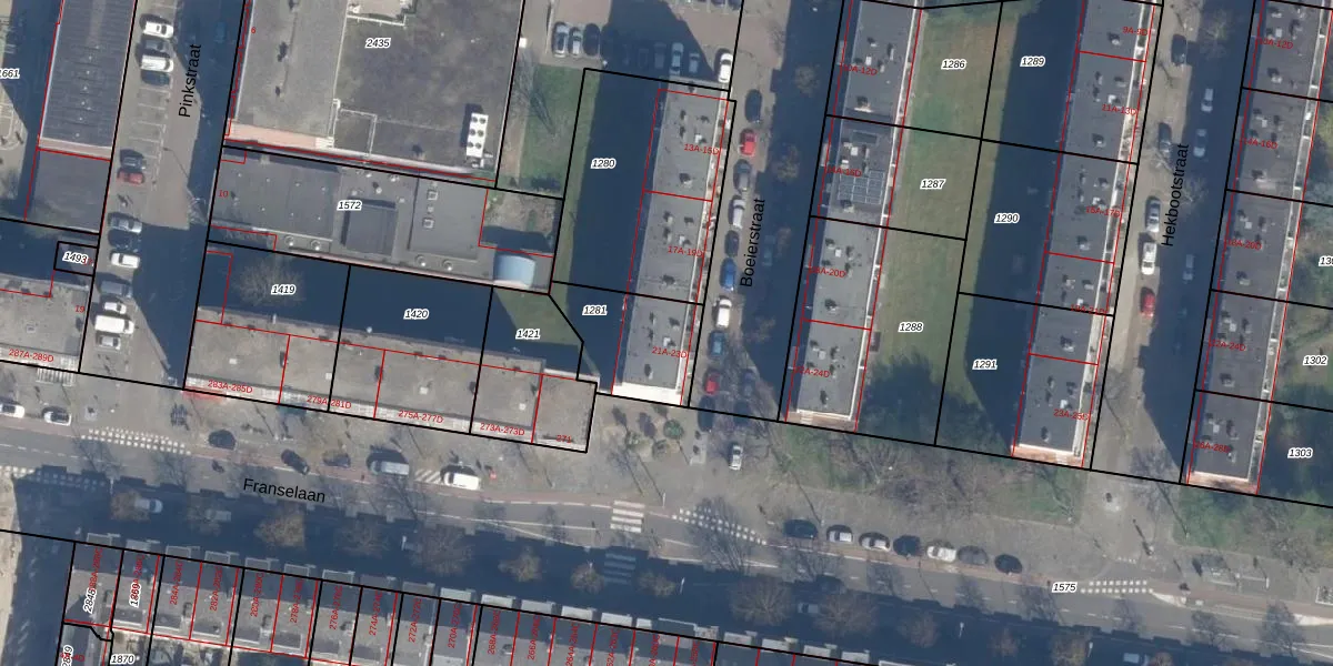 Boeierstraat 21-A is gelegen op kadastraal perceel RTD10AA1281. Deze kadastrale aanduiding is uniek en wordt gebruikt door het Kadaster om eigendomsrechten en andere zakelijke rechten vast te leggen. Het perceel maakt onderdeel uit van de kadastrale gemeente Rotterdam.