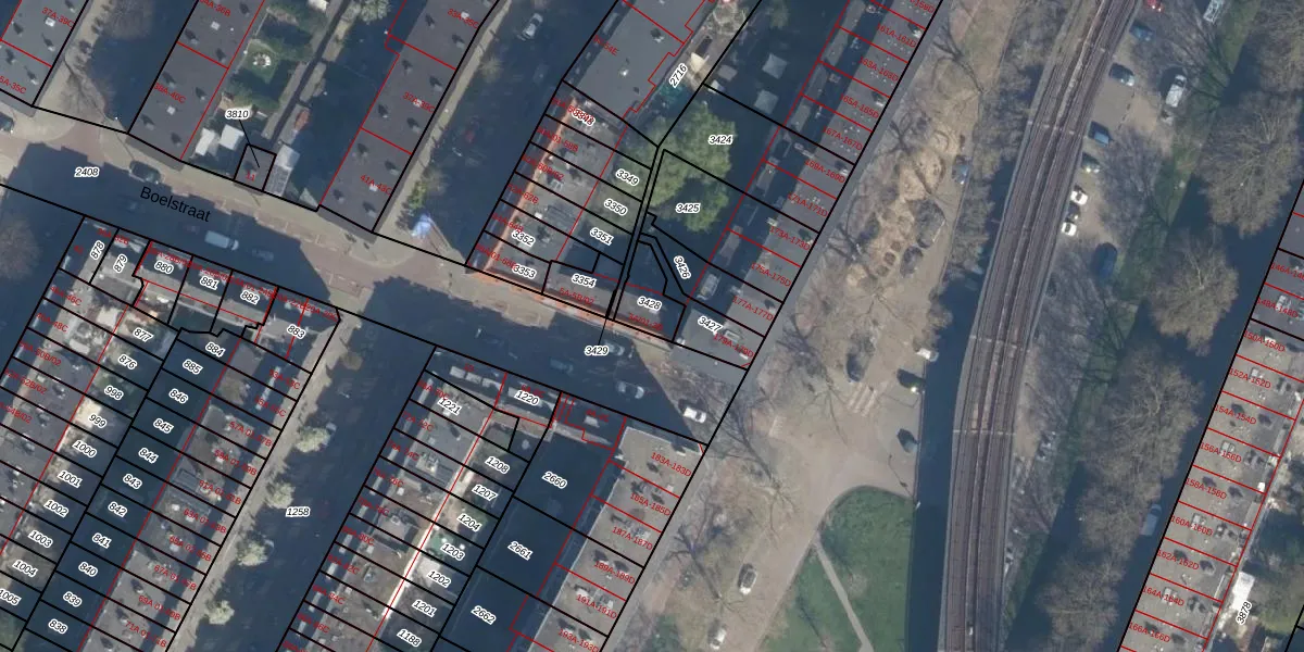 Boelstraat 3-B is gelegen op kadastraal perceel CLS00G3428. Deze kadastrale aanduiding is uniek en wordt gebruikt door het Kadaster om eigendomsrechten en andere zakelijke rechten vast te leggen. Het perceel maakt onderdeel uit van de kadastrale gemeente Charlois.