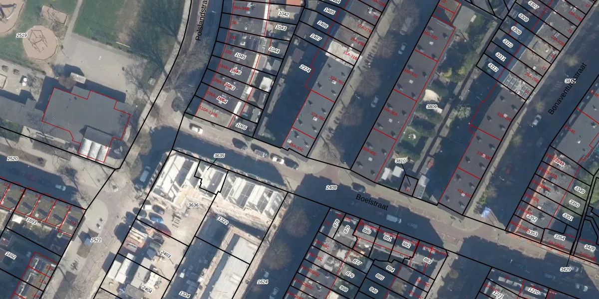 Boelstraat 35-A is gelegen op kadastraal perceel CLS00H2374. Deze kadastrale aanduiding is uniek en wordt gebruikt door het Kadaster om eigendomsrechten en andere zakelijke rechten vast te leggen. Het perceel maakt onderdeel uit van de kadastrale gemeente Charlois.
