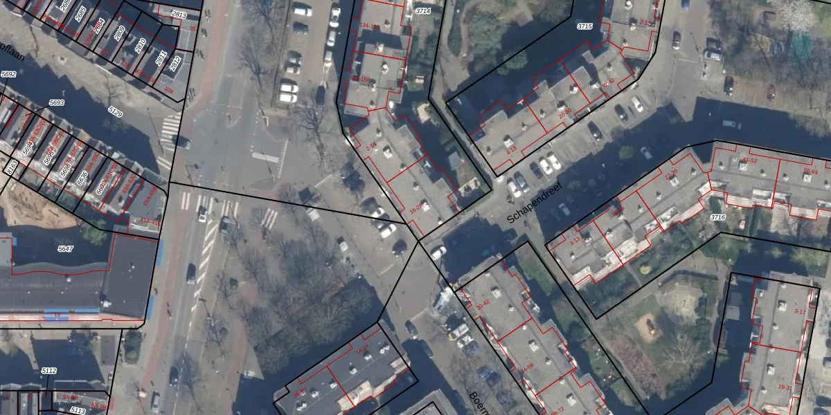 Boermarke 18 is gelegen op kadastraal perceel KLG00C3714. Deze kadastrale aanduiding is uniek en wordt gebruikt door het Kadaster om eigendomsrechten en andere zakelijke rechten vast te leggen. Het perceel maakt onderdeel uit van de kadastrale gemeente Kralingen.