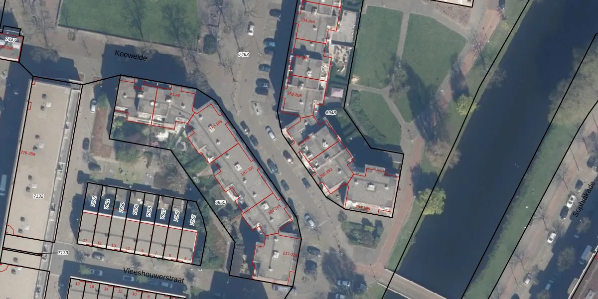 Het adres ligt op het perceel RTD07-R-6948, dat zich in de kadastrale gemeente Rotterdam bevindt. Het perceel is met 1960 m² relatief groot. Het gemiddelde ligt in de kadastrale gemeente Rotterdam op 506,86 m². Het kleinste perceel in de kadastrale gemeente is 0 m² groot. De grootste perceeloppervlakte is 10,8 ha. Er zijn 43 adressen aanwezig op het perceel. De laatste wijziging in het de Basisregistratie Kadaster (BRK) was op 24-01-2003.
