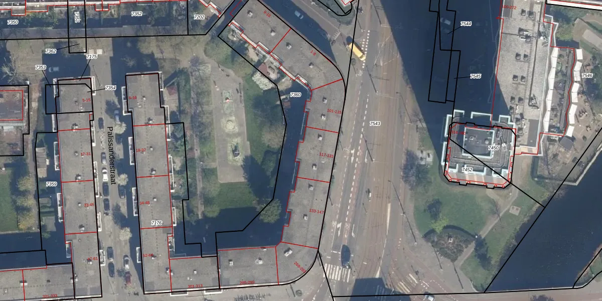 Het adres ligt op het perceel RTD07-R-7360, dat zich in de kadastrale gemeente Rotterdam bevindt. De oppervlakte van het perceel is 2145 m². Dat is groter dan gemiddeld in Rotterdam, waar de gemiddelde perceeloppervlakte op 506,86 m² ligt. De grootste perceeloppervlakte in de kadastrale gemeente is 10,8 ha. De kleinste oppervlakte bedraagt 0 m². Op het perceel zijn 56 adressen aanwezig. De laatste wijziging in het de Basisregistratie Kadaster (BRK) was op 07-06-2006.