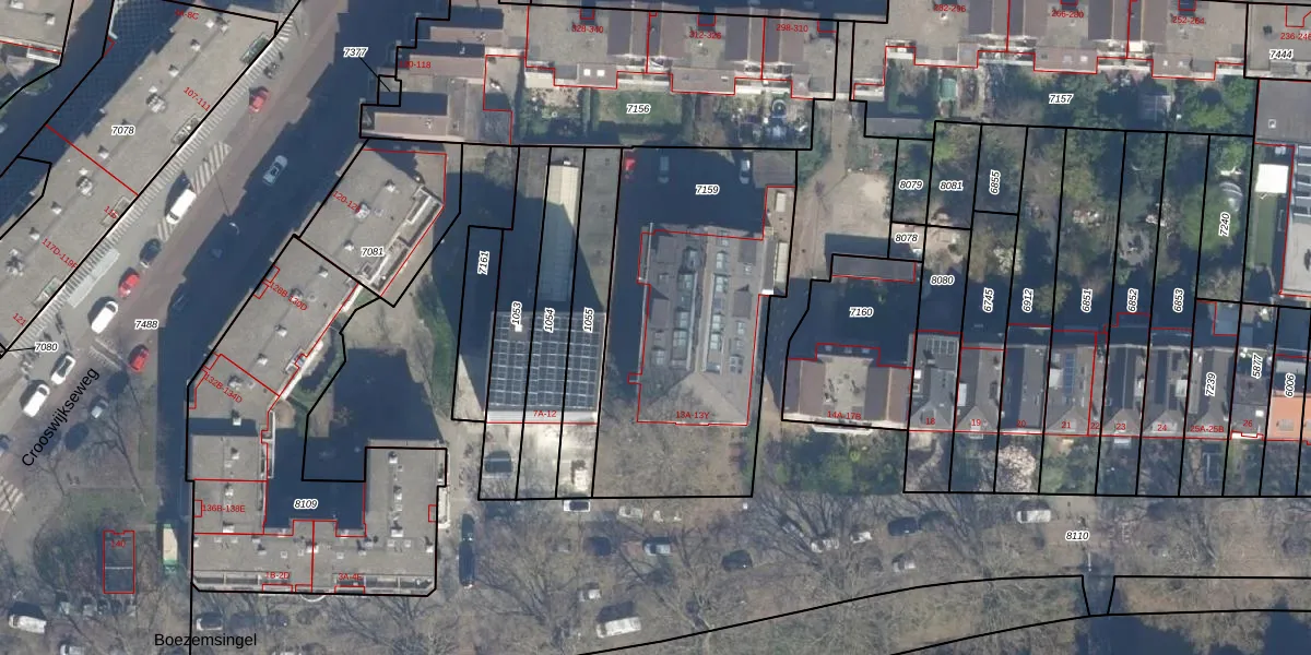 Het perceel waarop het adres ligt is RTD07-R-7159. De afkorting 'RTD07' staat voor kadastrale gemeente Rotterdam. De gemiddelde perceeloppervlakte in de kadastrale gemeente Rotterdam is 506,86 m². Dit perceel is met zijn 1355 m² dus groter dan gemiddeld. Het kleinste perceel in de kadastrale gemeente is 0 m² groot. De grootste perceeloppervlakte is 10,8 ha. Op het perceel liggen in totaal 35 adressen. In de Basisregistratie Kadaster (BRK) werden de grenzen van het perceel geregistreerd op 24-01-2003.