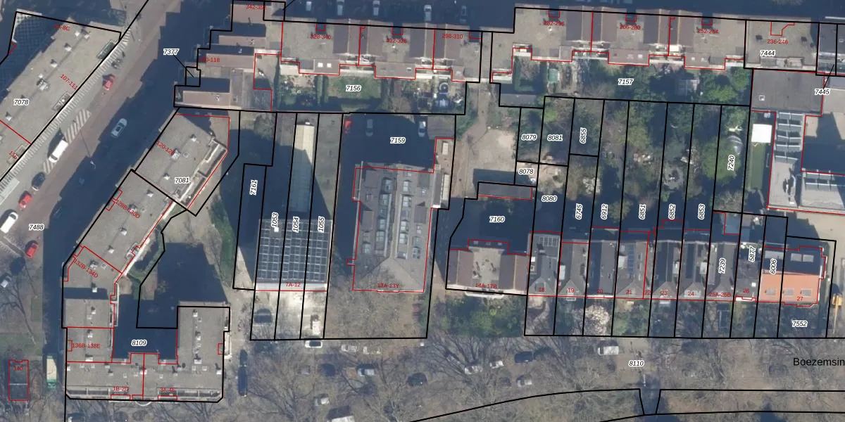Het perceel waarop het adres ligt is RTD07-R-7159. De afkorting 'RTD07' staat voor kadastrale gemeente Rotterdam. De gemiddelde perceeloppervlakte in de kadastrale gemeente Rotterdam is 506,86 m². Dit perceel is met zijn 1355 m² dus groter dan gemiddeld. Het kleinste perceel in de kadastrale gemeente is 0 m² groot. De grootste perceeloppervlakte is 10,8 ha. Er zijn 35 adressen aanwezig op het perceel. De laatste wijziging in het de Basisregistratie Kadaster (BRK) was op 24-01-2003.