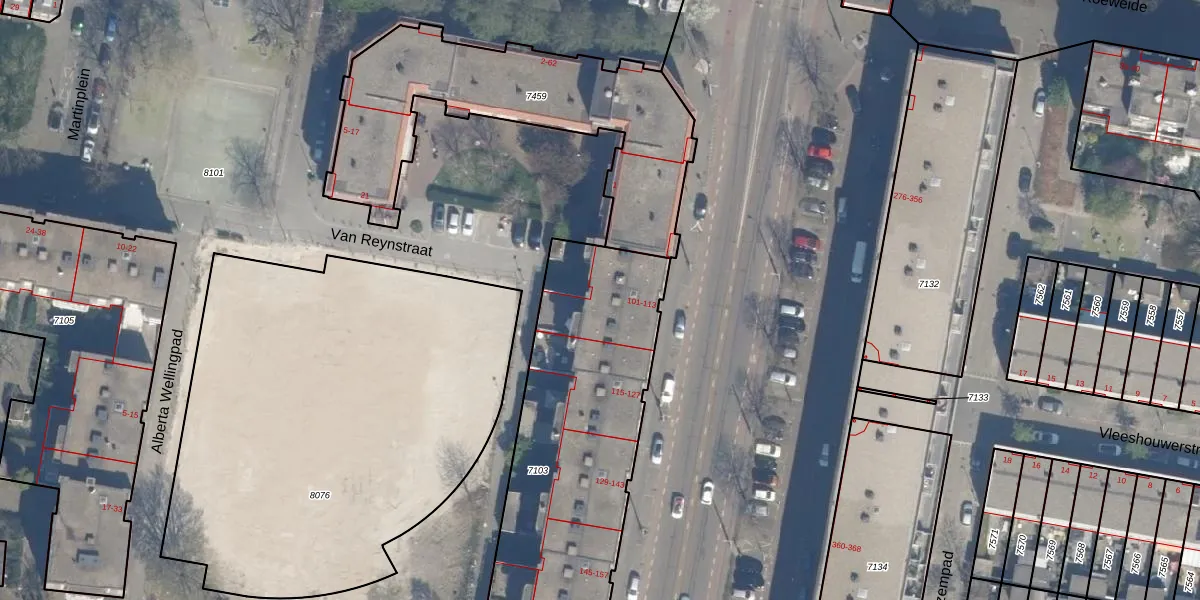 Het adres ligt op het perceel RTD07-R-7103, dat zich in de kadastrale gemeente Rotterdam bevindt. De oppervlakte van het perceel is 1415 m². Dat is groter dan gemiddeld in Rotterdam, waar de gemiddelde perceeloppervlakte op 506,86 m² ligt. Het kleinste perceel in de kadastrale gemeente is 0 m² groot. De grootste perceeloppervlakte is 10,8 ha. Op het perceel zijn 34 adressen aanwezig. De laatste wijziging in het de Basisregistratie Kadaster (BRK) was op 21-01-2010.