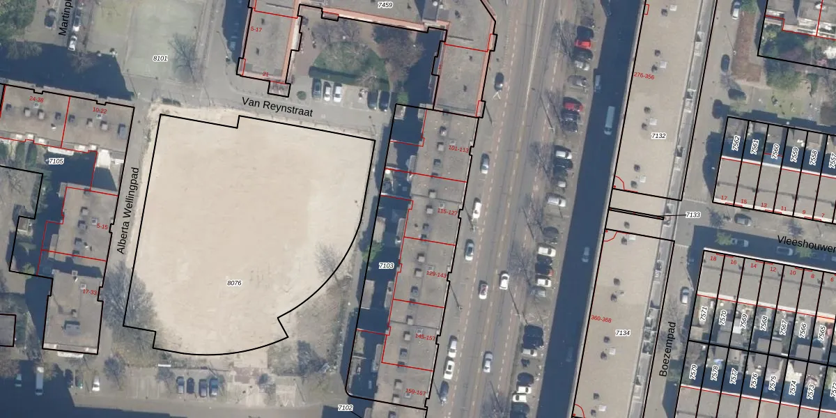 Het perceel waarop Boezemstraat 121 staat heeft een oppervlakte van 1415 m². Dit is een zeer groot perceel. De perceeloppervlakte wordt geregistreerd door het Kadaster. Gedetailleerde informatie over de maten van dit perceel kunt u vinden in het rapport Kadastrale kaart met maatvoering van Boezemstraat 121.