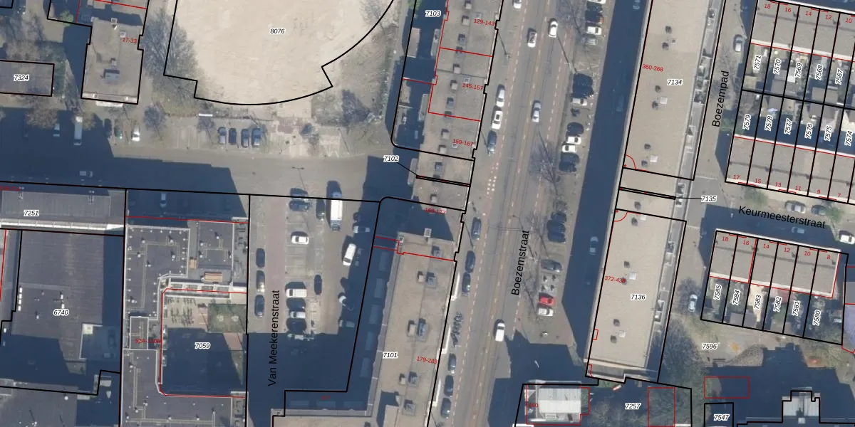 Boezemstraat 177 is gelegen op kadastraal perceel RTD07R7101. Deze kadastrale aanduiding is uniek en wordt gebruikt door het Kadaster om eigendomsrechten en andere zakelijke rechten vast te leggen. Het perceel maakt onderdeel uit van de kadastrale gemeente Rotterdam.