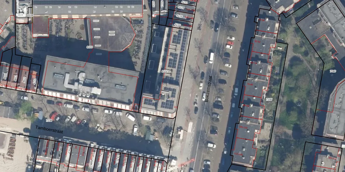 Boezemstraat 21-B is gelegen op kadastraal perceel RTD07R8102. Deze kadastrale aanduiding is uniek en wordt gebruikt door het Kadaster om eigendomsrechten en andere zakelijke rechten vast te leggen. Het perceel maakt onderdeel uit van de kadastrale gemeente Rotterdam.