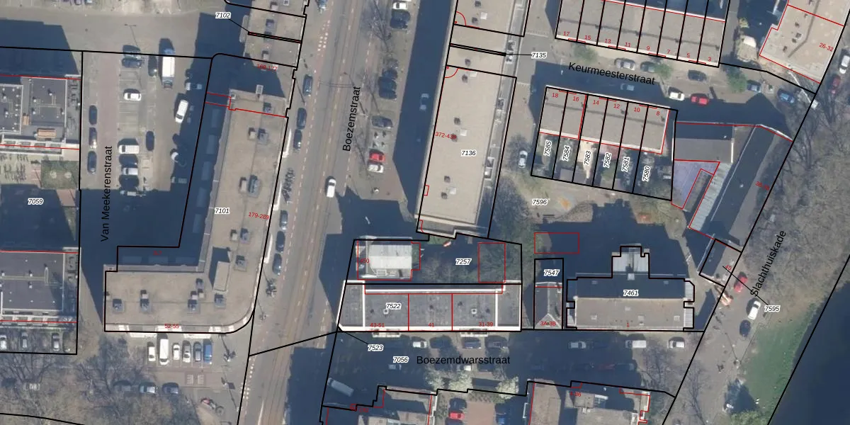 Boezemstraat 410 is gelegen op kadastraal perceel RTD07R7136. Deze kadastrale aanduiding is uniek en wordt gebruikt door het Kadaster om eigendomsrechten en andere zakelijke rechten vast te leggen. Het perceel maakt onderdeel uit van de kadastrale gemeente Rotterdam.
