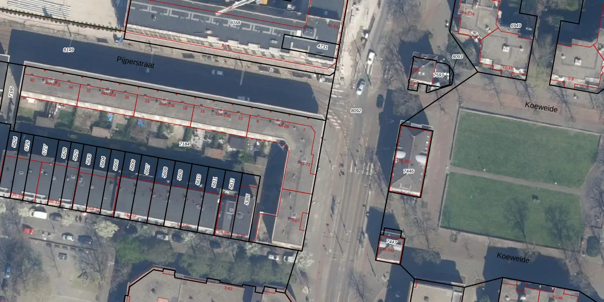 Het adres ligt op het perceel RTD07-R-7184, dat zich in de kadastrale gemeente Rotterdam bevindt. De oppervlakte van het perceel is 2620 m². Dat is groter dan gemiddeld in Rotterdam, waar de gemiddelde perceeloppervlakte op 506,86 m² ligt. Het grootste perceel in de kadastrale gemeente is 10,8 ha. Het kleinste perceel heeft een oppervlakte van 0 m². Er zijn 44 adressen aanwezig op het perceel. De huidige grenzen van het perceel zijn digitaal in de Basisregistratie Kadaster (BRK) geregistreerd op 21-01-2010.
