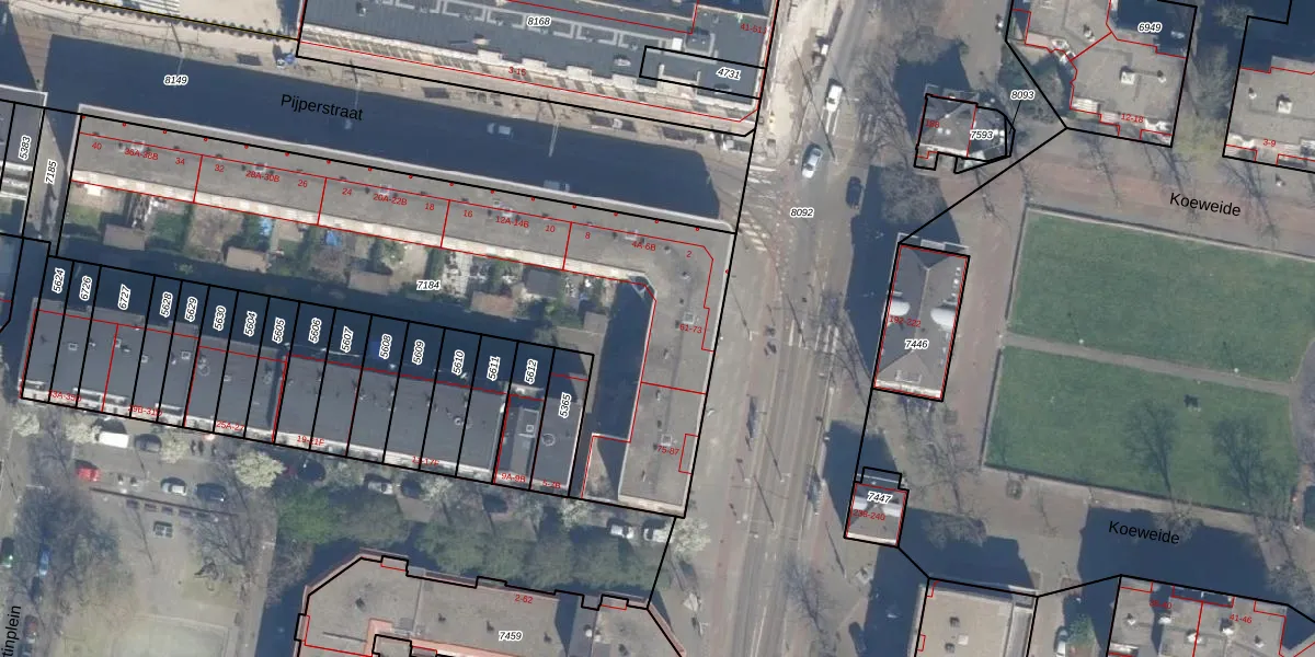 Het adres ligt op het perceel RTD07-R-7184, dat zich in de kadastrale gemeente Rotterdam bevindt. De oppervlakte van het perceel is 2620 m². Dat is groter dan gemiddeld in Rotterdam, waar de gemiddelde perceeloppervlakte op 506,86 m² ligt. Het grootste perceel in de kadastrale gemeente is 10,8 ha. Het kleinste perceel heeft een oppervlakte van 0 m². Er zijn 44 adressen aanwezig op het perceel. In de Basisregistratie Kadaster (BRK) werden de grenzen van het perceel geregistreerd op 21-01-2010.