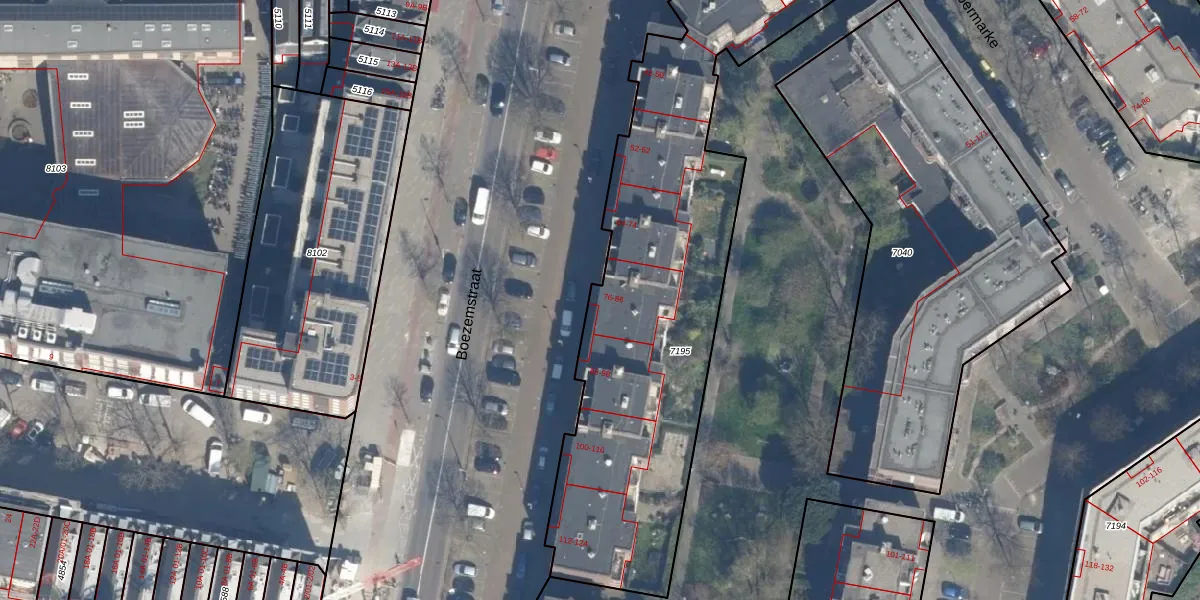 Boezemstraat 84 is gelegen op kadastraal perceel RTD07R7195. Deze kadastrale aanduiding is uniek en wordt gebruikt door het Kadaster om eigendomsrechten en andere zakelijke rechten vast te leggen. Het perceel maakt onderdeel uit van de kadastrale gemeente Rotterdam.