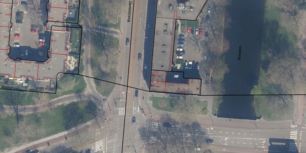 Boezemweg 156-B is gelegen op kadastraal perceel RTD04AE607. Deze kadastrale aanduiding is uniek en wordt gebruikt door het Kadaster om eigendomsrechten en andere zakelijke rechten vast te leggen. Het perceel maakt onderdeel uit van de kadastrale gemeente Rotterdam.
