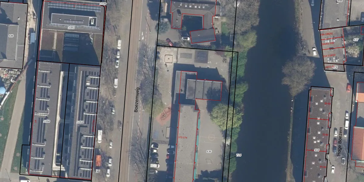 Boezemweg 172 is gelegen op kadastraal perceel RTD04AE636. Deze kadastrale aanduiding is uniek en wordt gebruikt door het Kadaster om eigendomsrechten en andere zakelijke rechten vast te leggen. Het perceel maakt onderdeel uit van de kadastrale gemeente Rotterdam.