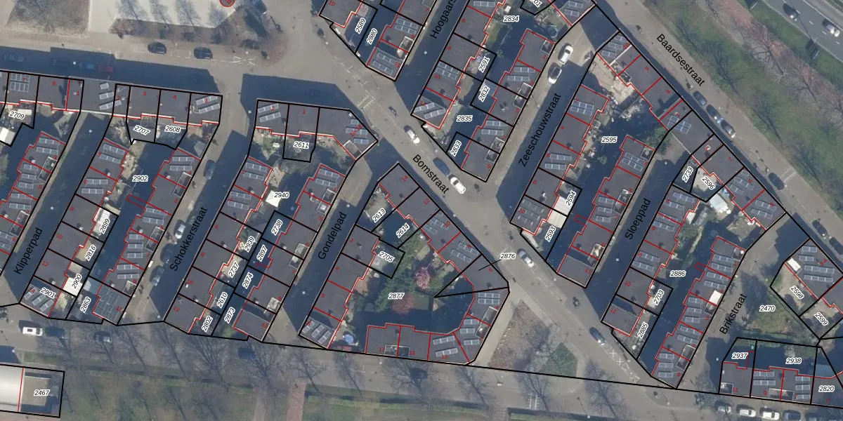 Gebruik de zoekbalk of klik op een perceel voor informatie over de adressen binnen dit perceel.