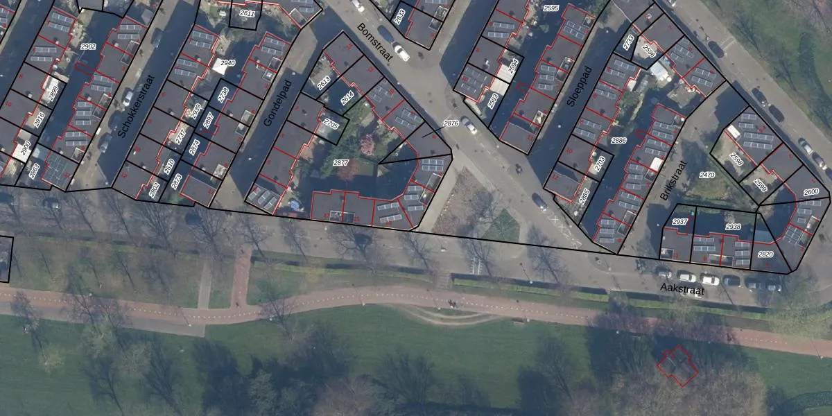 Het perceel waarop Bomstraat 2 staat heeft een oppervlakte van 1011 m². Dit is een zeer groot perceel. De perceeloppervlakte wordt geregistreerd door het Kadaster. Gedetailleerde informatie over de maten van dit perceel kunt u vinden in het rapport Kadastrale kaart met maatvoering van Bomstraat 2.
