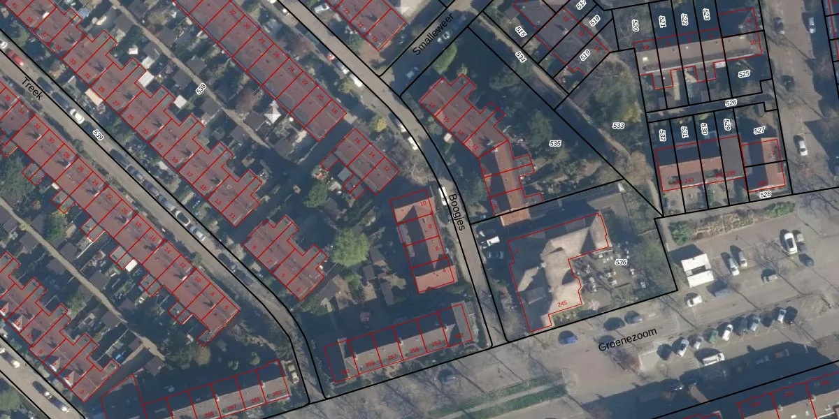 Het perceel waarop Boogjes 10 staat heeft een oppervlakte van 9846 m². Dit is een zeer groot perceel. De perceeloppervlakte wordt geregistreerd door het Kadaster. Gedetailleerde informatie over de maten van dit perceel kunt u vinden in het rapport Kadastrale kaart met maatvoering van Boogjes 10.