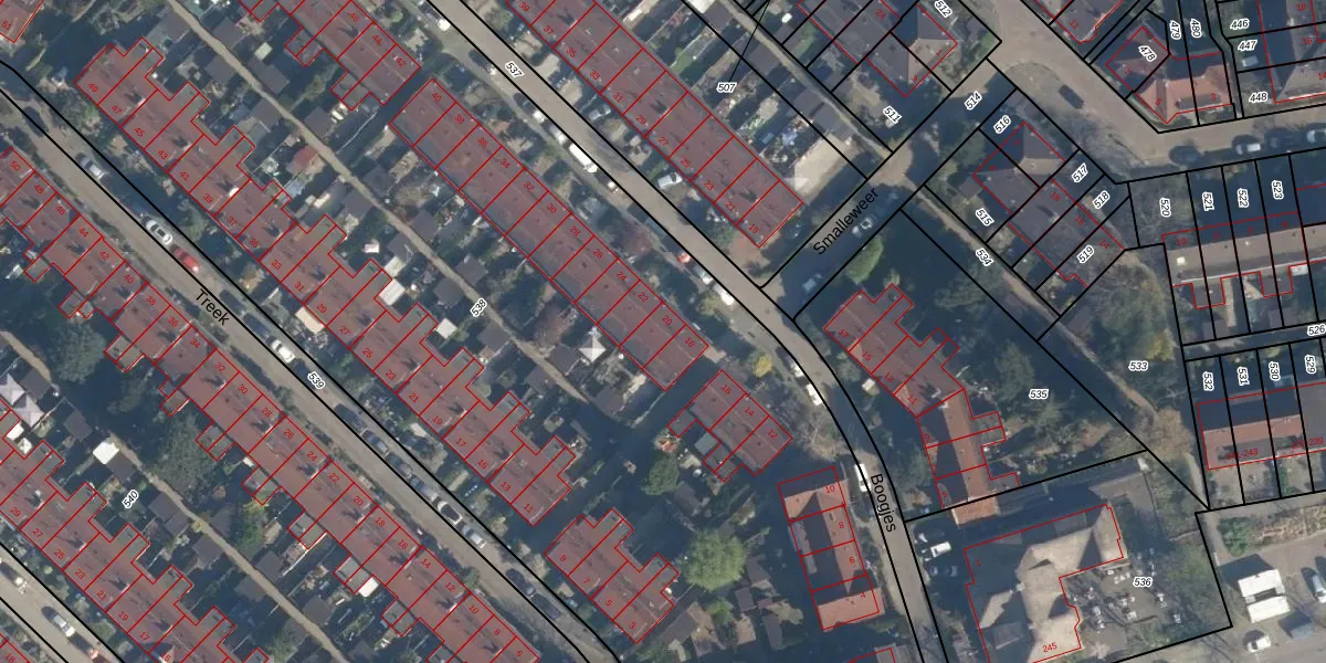 Het perceel waarop Boogjes 20 staat heeft een oppervlakte van 9846 m². Dit is een zeer groot perceel. De perceeloppervlakte wordt geregistreerd door het Kadaster. Gedetailleerde informatie over de maten van dit perceel kunt u vinden in het rapport Kadastrale kaart met maatvoering van Boogjes 20.