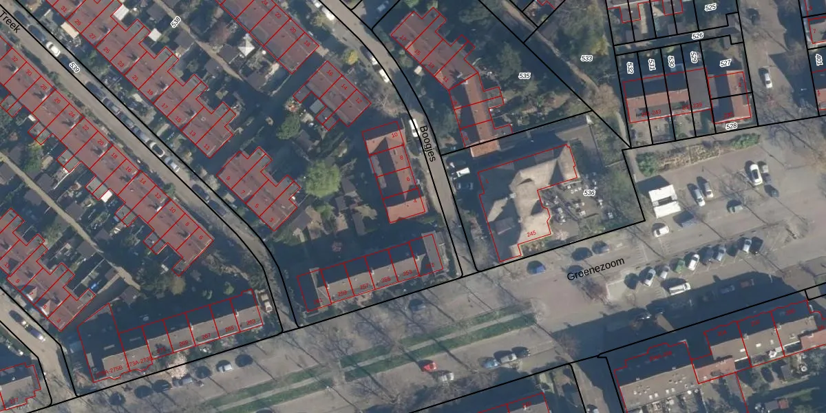 Het perceel waarop Boogjes 4 staat heeft een oppervlakte van 9846 m². Dit is een zeer groot perceel. De perceeloppervlakte wordt geregistreerd door het Kadaster. Gedetailleerde informatie over de maten van dit perceel kunt u vinden in het rapport Kadastrale kaart met maatvoering van Boogjes 4.