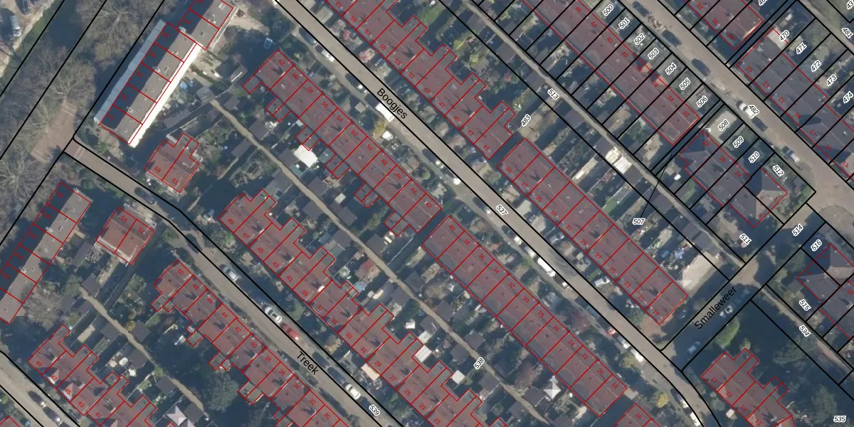 Het perceel waarop Boogjes 42 staat heeft een oppervlakte van 9846 m². Dit is een zeer groot perceel. De perceeloppervlakte wordt geregistreerd door het Kadaster. Gedetailleerde informatie over de maten van dit perceel kunt u vinden in het rapport Kadastrale kaart met maatvoering van Boogjes 42.