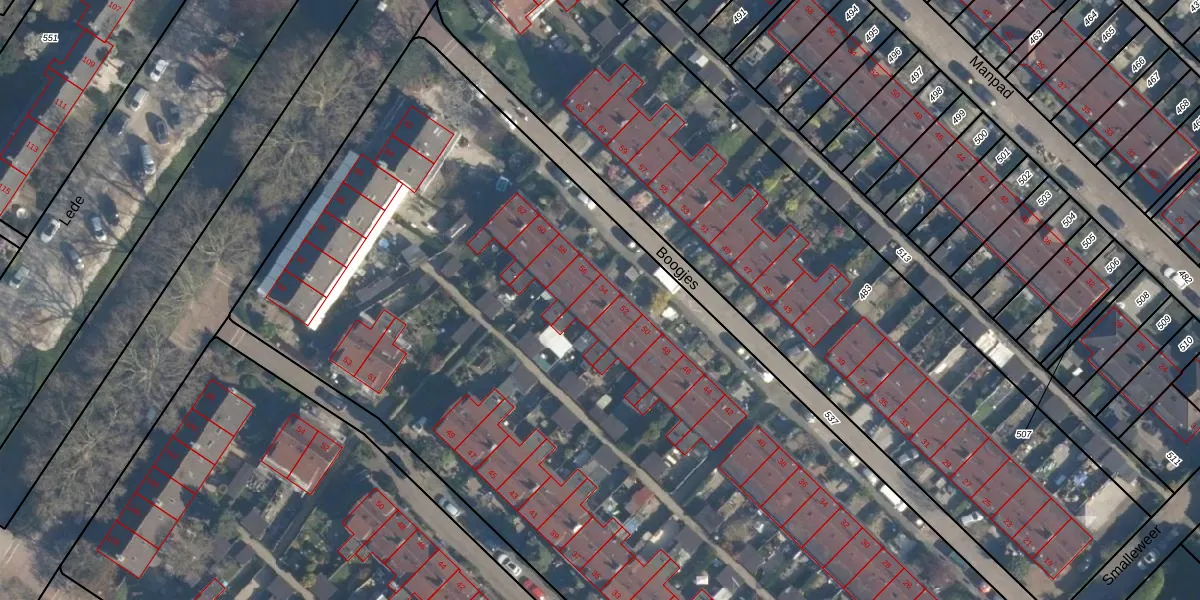 Het perceel waarop Boogjes 54 staat heeft een oppervlakte van 9846 m². Dit is een zeer groot perceel. De perceeloppervlakte wordt geregistreerd door het Kadaster. Gedetailleerde informatie over de maten van dit perceel kunt u vinden in het rapport Kadastrale kaart met maatvoering van Boogjes 54.