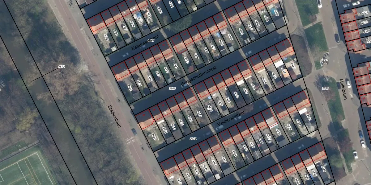 Gebruik de zoekbalk of klik op een perceel voor informatie over de adressen binnen dit perceel.