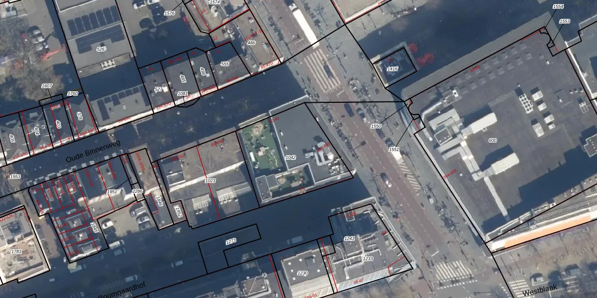 Het adres ligt op het perceel RTD04-AG-1042, dat zich in de kadastrale gemeente Rotterdam bevindt. De gemiddelde perceelgrootte in Rotterdam is 1240,47 m². Dit perceel is kleiner: de perceeloppervlakte bedraagt 815 m². Het grootste perceel in de kadastrale gemeente is 17,3 ha. Het kleinste perceel heeft een oppervlakte van 0 m². Op het perceel zijn 10 adressen aanwezig. De huidige grenzen van het perceel zijn digitaal in de Basisregistratie Kadaster (BRK) geregistreerd op 13-12-2006.