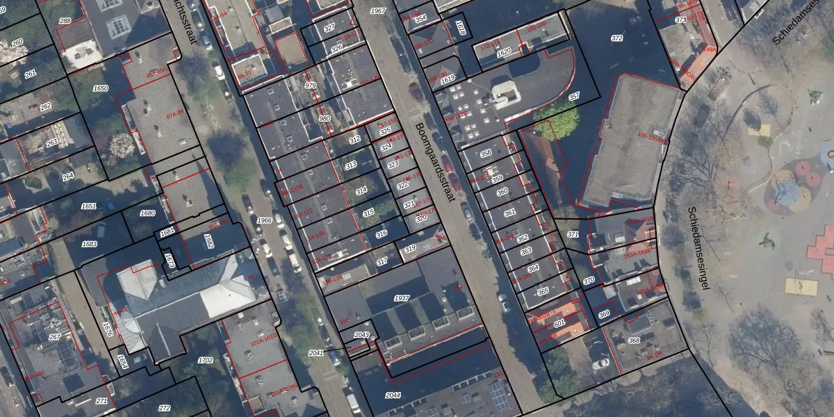 Boomgaardsstraat 177 is gelegen op kadastraal perceel RTD04AG321. Deze kadastrale aanduiding is uniek en wordt gebruikt door het Kadaster om eigendomsrechten en andere zakelijke rechten vast te leggen. Het perceel maakt onderdeel uit van de kadastrale gemeente Rotterdam.