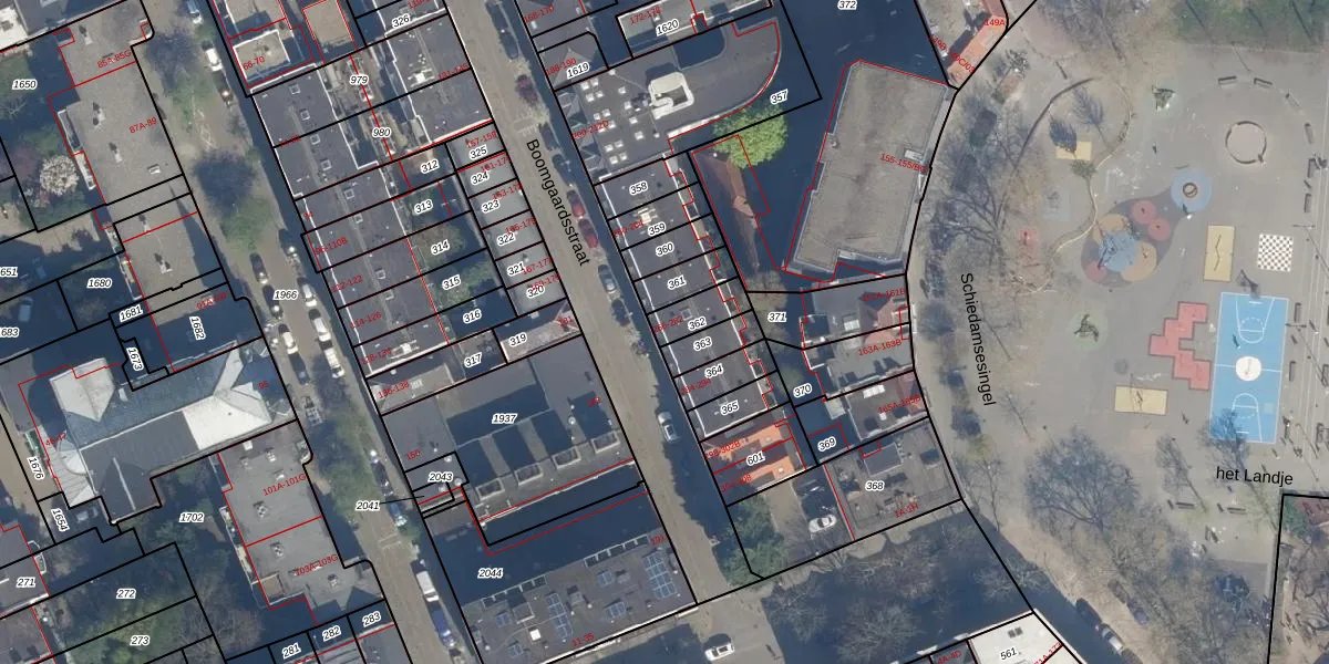 Het adres ligt op het perceel RTD04-AG-362, dat zich in de kadastrale gemeente Rotterdam bevindt. De gemiddelde perceelgrootte in Rotterdam is 1240,47 m². Dit perceel is kleiner: de perceeloppervlakte bedraagt 78 m². De grootste perceeloppervlakte in de kadastrale gemeente is 17,3 ha. De kleinste oppervlakte bedraagt 0 m². Er zijn 8 adressen aanwezig op het perceel. In de Basisregistratie Kadaster (BRK) werden de grenzen van het perceel geregistreerd op 31-01-2003.