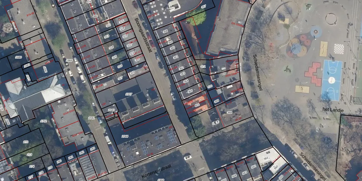 Het adres ligt op het perceel RTD04-AG-364, dat zich in de kadastrale gemeente Rotterdam bevindt. De gemiddelde perceelgrootte in Rotterdam is 1239,97 m². Dit perceel is kleiner: de perceeloppervlakte bedraagt 78 m². De grootste perceeloppervlakte in de kadastrale gemeente is 17,3 ha. De kleinste oppervlakte bedraagt 0 m². Op het perceel zijn 6 adressen aanwezig. De huidige grenzen van het perceel zijn digitaal in de Basisregistratie Kadaster (BRK) geregistreerd op 31-01-2003.