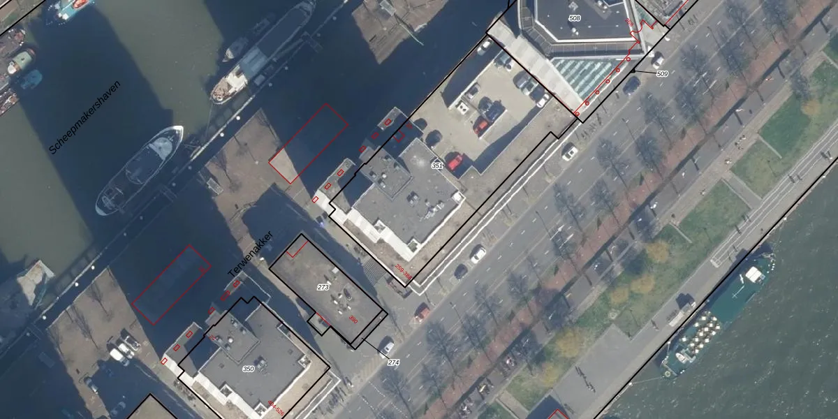 Het perceel waarop Boompjes 275 staat heeft een oppervlakte van 1568 m². Dit is een zeer groot perceel. De perceeloppervlakte wordt geregistreerd door het Kadaster. Gedetailleerde informatie over de maten van dit perceel kunt u vinden in het rapport Kadastrale kaart met maatvoering van Boompjes 275.
