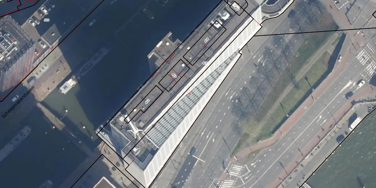 Boompjes 40 is gelegen op kadastraal perceel RTD04AH416. Deze kadastrale aanduiding is uniek en wordt gebruikt door het Kadaster om eigendomsrechten en andere zakelijke rechten vast te leggen. Het perceel maakt onderdeel uit van de kadastrale gemeente Rotterdam.