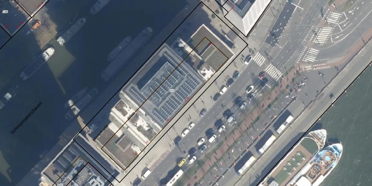 Het adres ligt op het perceel RTD04-AH-610, dat zich in de kadastrale gemeente Rotterdam bevindt. De oppervlakte van het perceel is 1399 m². Dat is groter dan gemiddeld in Rotterdam, waar de gemiddelde perceeloppervlakte op 1239,97 m² ligt. Het grootste perceel in de kadastrale gemeente is 17,3 ha. Het kleinste perceel heeft een oppervlakte van 0 m². Op het perceel zijn 340 adressen aanwezig. In de Basisregistratie Kadaster (BRK) werden de grenzen van het perceel geregistreerd op 26-07-2023.