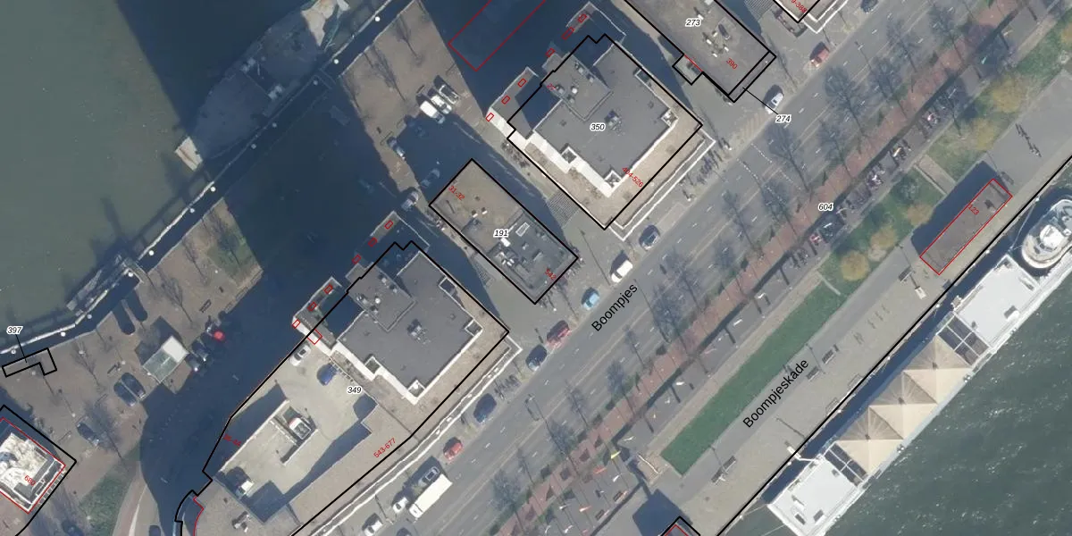 Boompjes 542 is gelegen op kadastraal perceel RTD04AH191. Deze kadastrale aanduiding is uniek en wordt gebruikt door het Kadaster om eigendomsrechten en andere zakelijke rechten vast te leggen. Het perceel maakt onderdeel uit van de kadastrale gemeente Rotterdam.