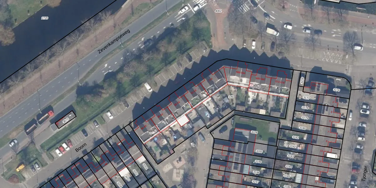 Het adres ligt op het perceel RTD13-BA-149, dat zich in de kadastrale gemeente Rotterdam bevindt. De oppervlakte van het perceel is 2280 m². Dat is groter dan gemiddeld in Rotterdam, waar de gemiddelde perceeloppervlakte op 583,29 m² ligt. De grootste perceeloppervlakte in de kadastrale gemeente is 9,3 ha. De kleinste oppervlakte bedraagt 3 m². Op het perceel zijn 32 adressen aanwezig. De laatste wijziging in het de Basisregistratie Kadaster (BRK) was op 02-10-2007.