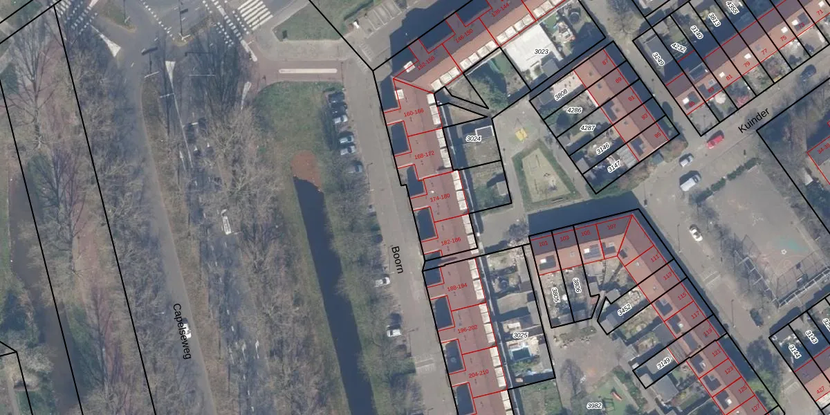 Boorn 176 is gelegen op kadastraal perceel RTD13BA3023. Deze kadastrale aanduiding is uniek en wordt gebruikt door het Kadaster om eigendomsrechten en andere zakelijke rechten vast te leggen. Het perceel maakt onderdeel uit van de kadastrale gemeente Rotterdam.