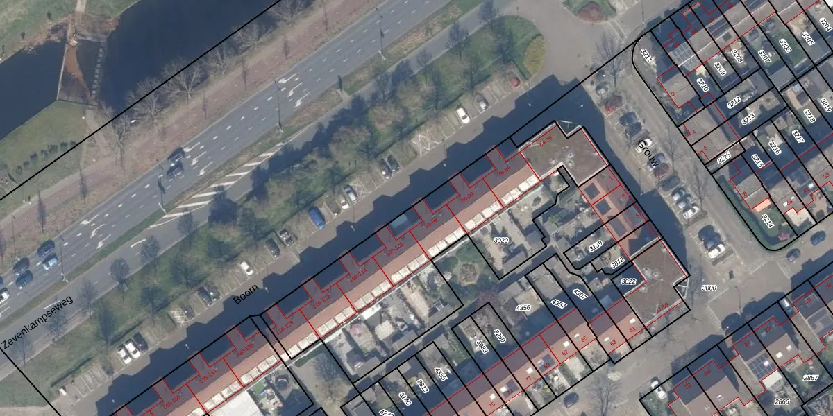 Het perceel waarop Boorn 96 staat heeft een oppervlakte van 1860 m². Dit is een zeer groot perceel. De perceeloppervlakte wordt geregistreerd door het Kadaster. Gedetailleerde informatie over de maten van dit perceel kunt u vinden in het rapport Kadastrale kaart met maatvoering van Boorn 96.